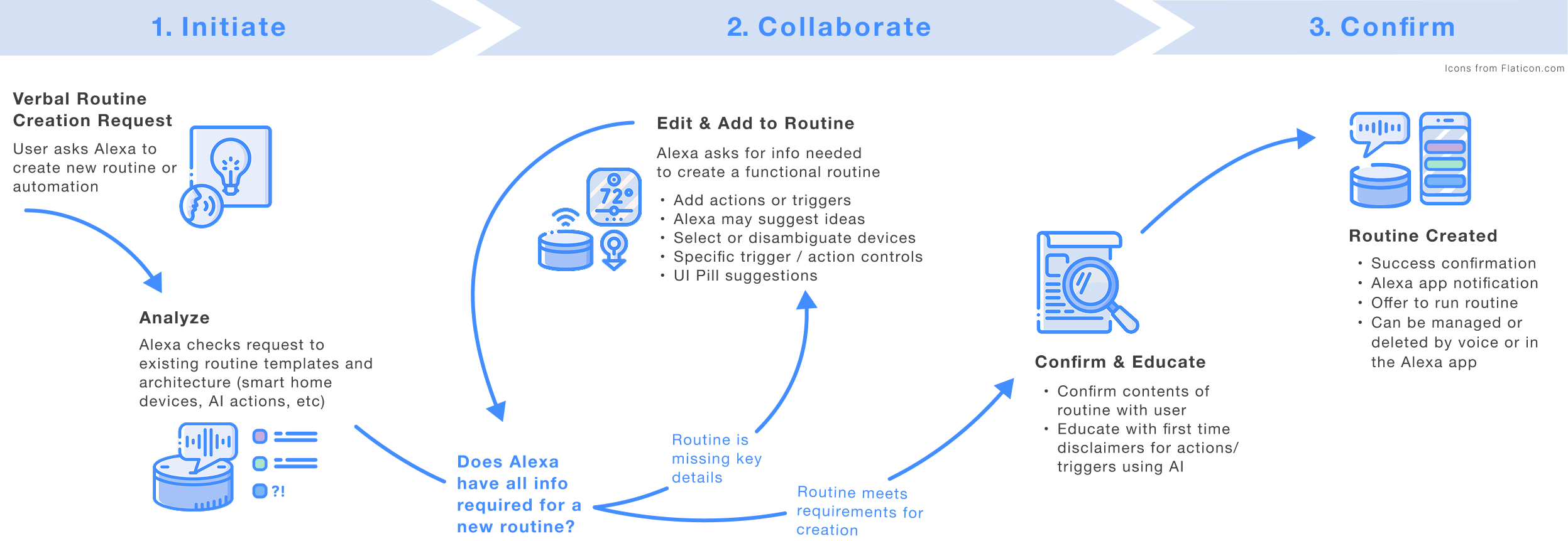 This project enabled users to naturally ask for routines and automations with a quick conversation, removing the burden to navigate the large amount of routine control settings in the Alexa app.